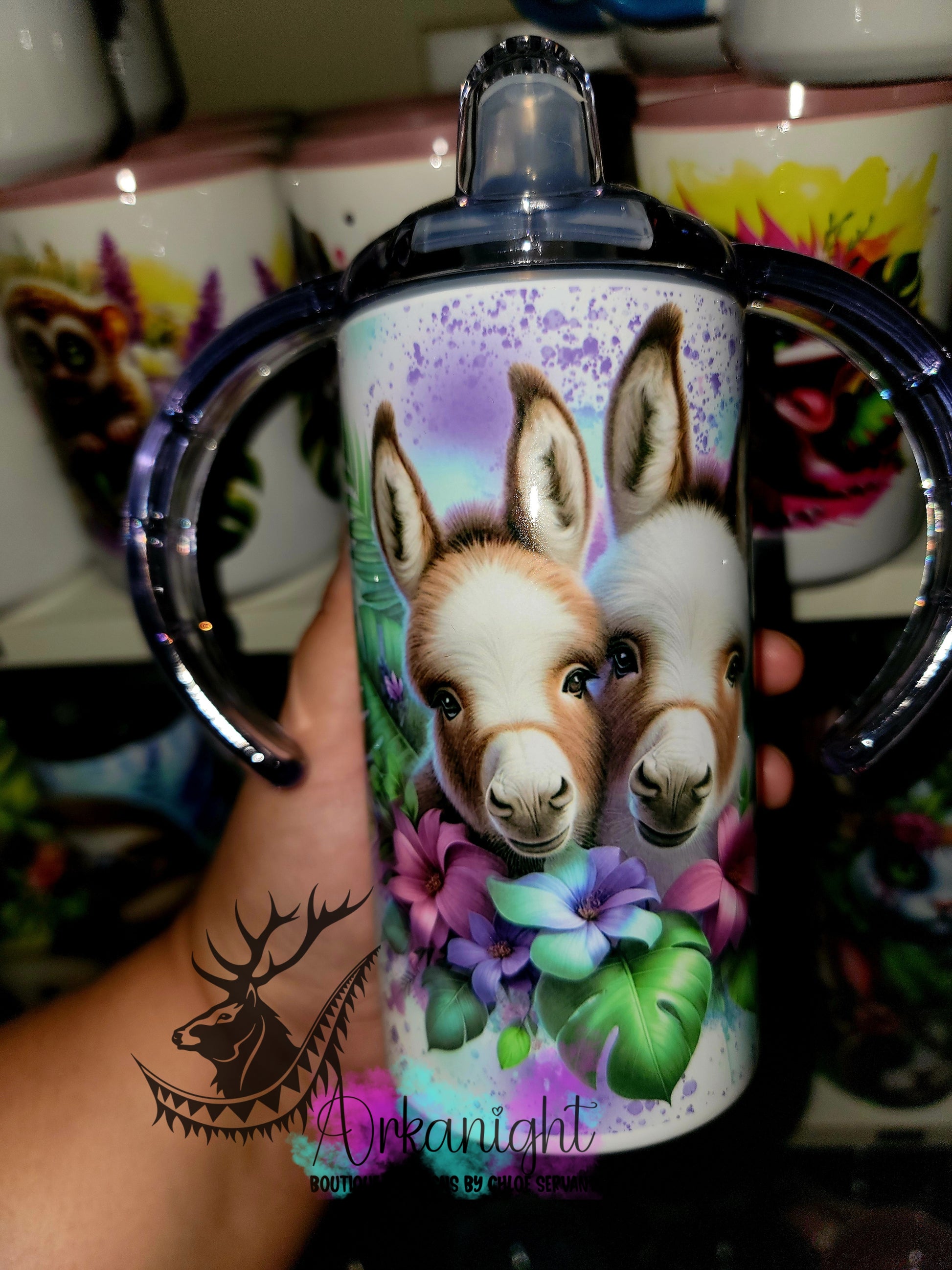 Gourde - Biberon Évolutif sur commande - Âne Brun&Mauve