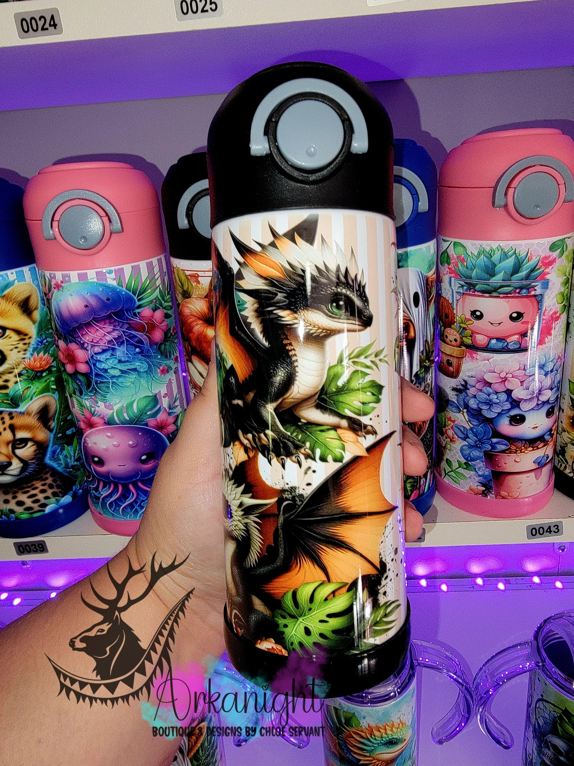 Gourde pour enfant - Sur Commande - Bébé Dragon Noir, Pêche & Blanc