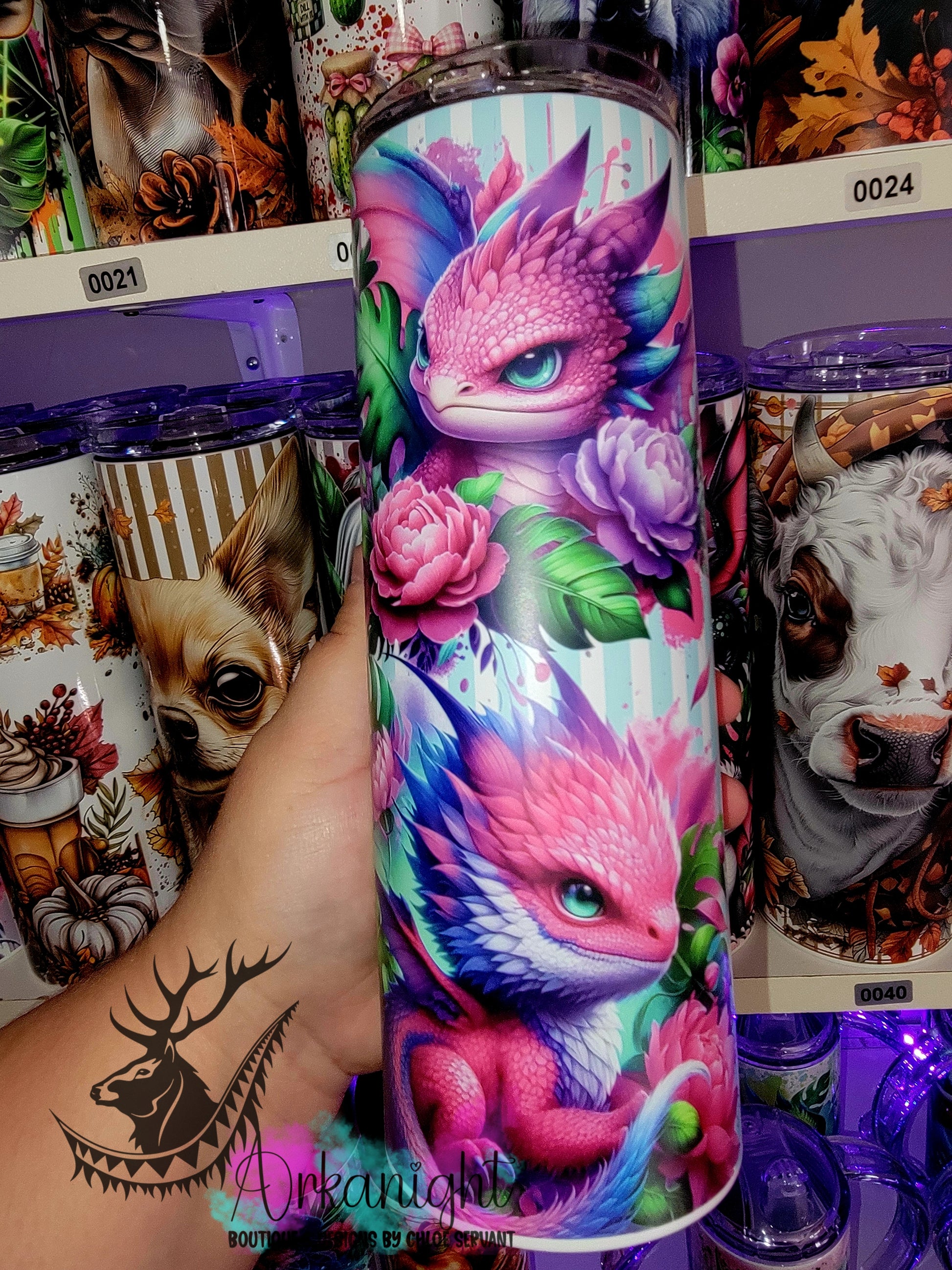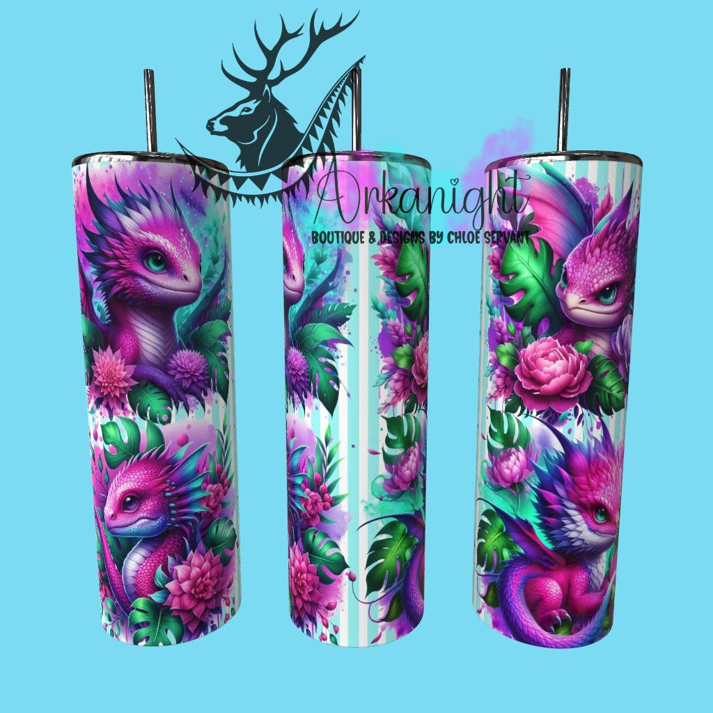 Gourde sur commande - Collection Monstera & Bébé Dragon - Rose & Turquoise & Mauve