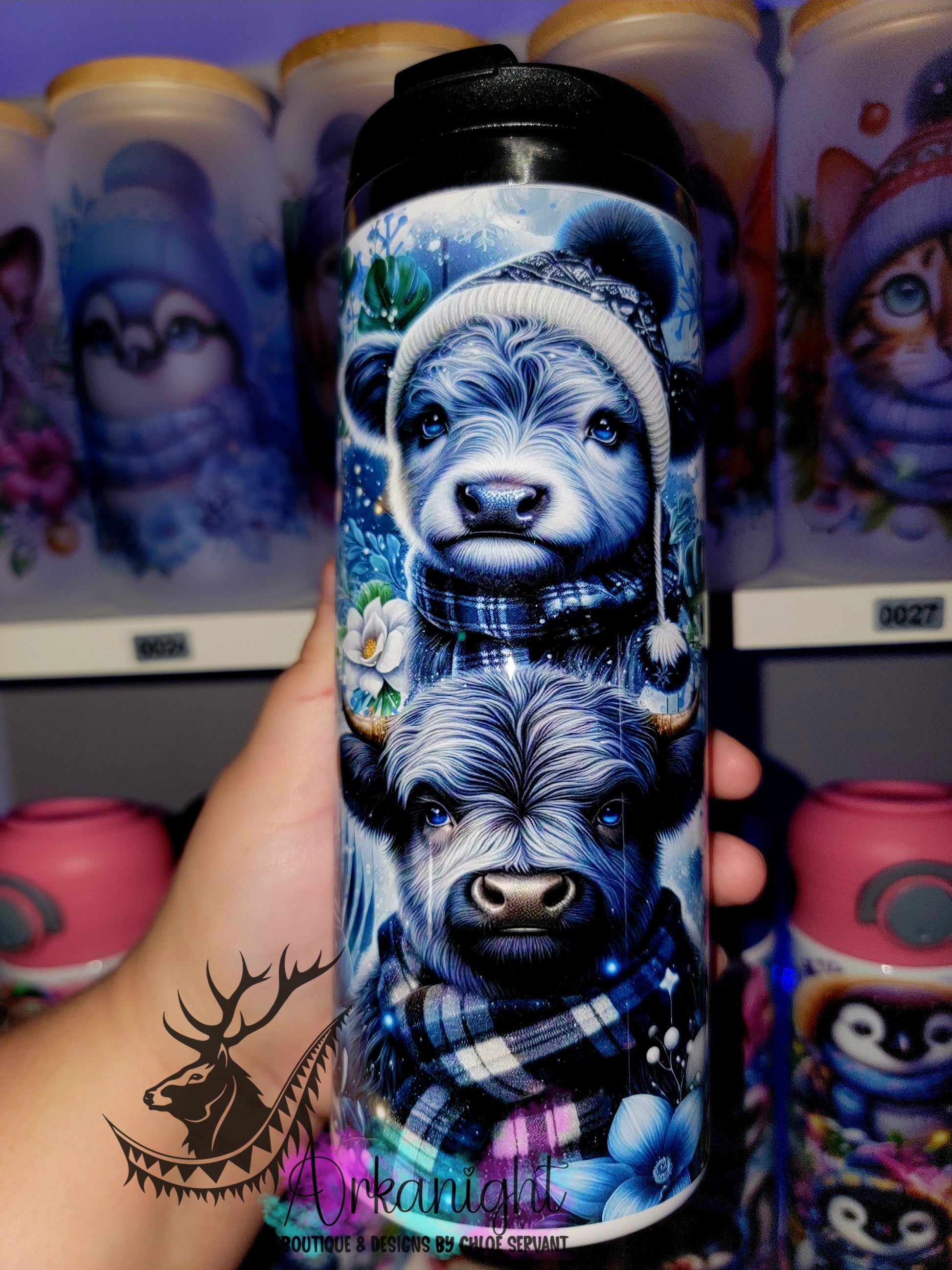 Gourde sur commande - Couvercle à café - 14 oz - Collection Hiver & Noël 2025 - Vache Grise & Noir