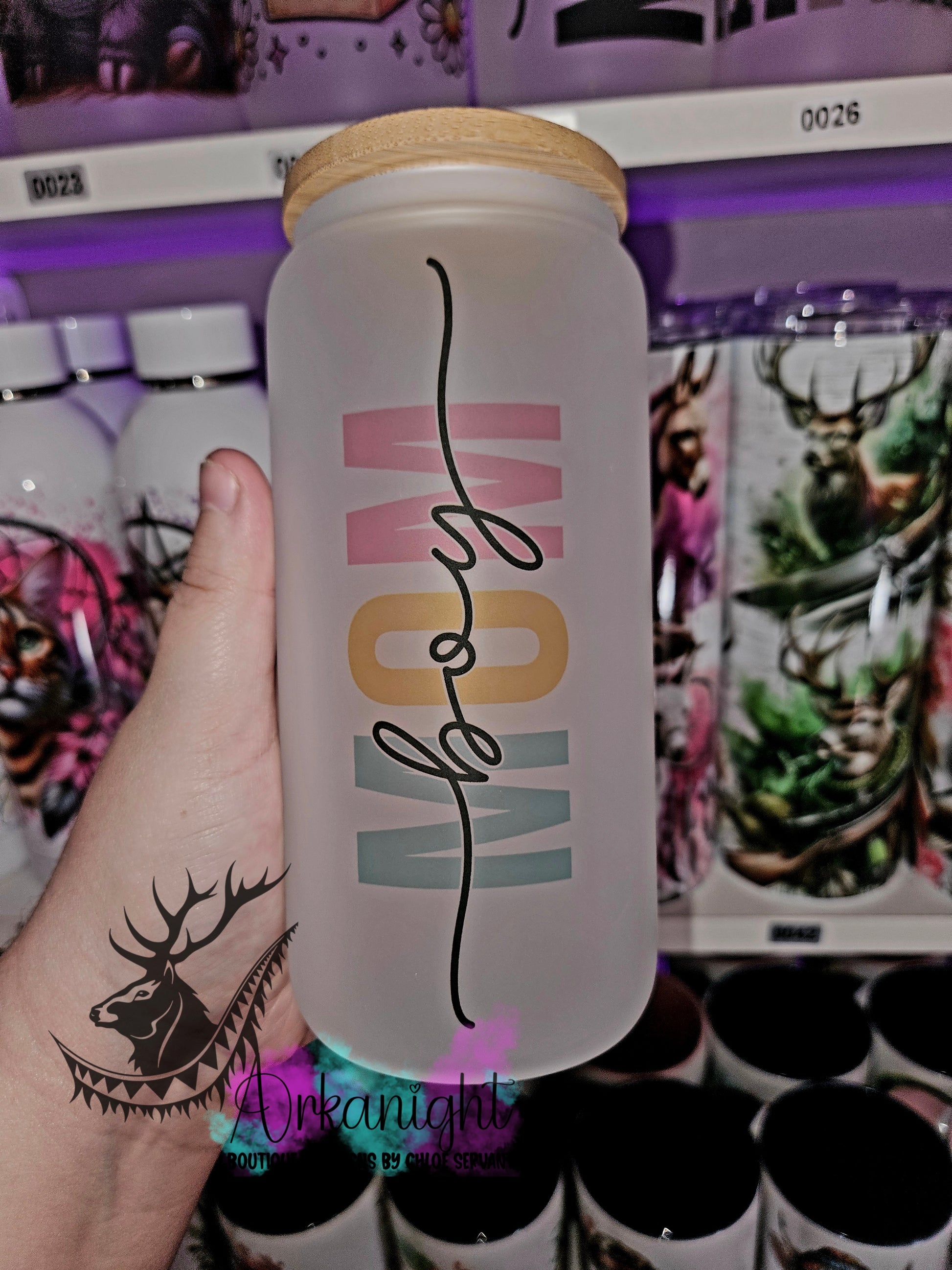 Verre en vitre givré 16oz & Couvercle en Bambou - Boy Mom 2