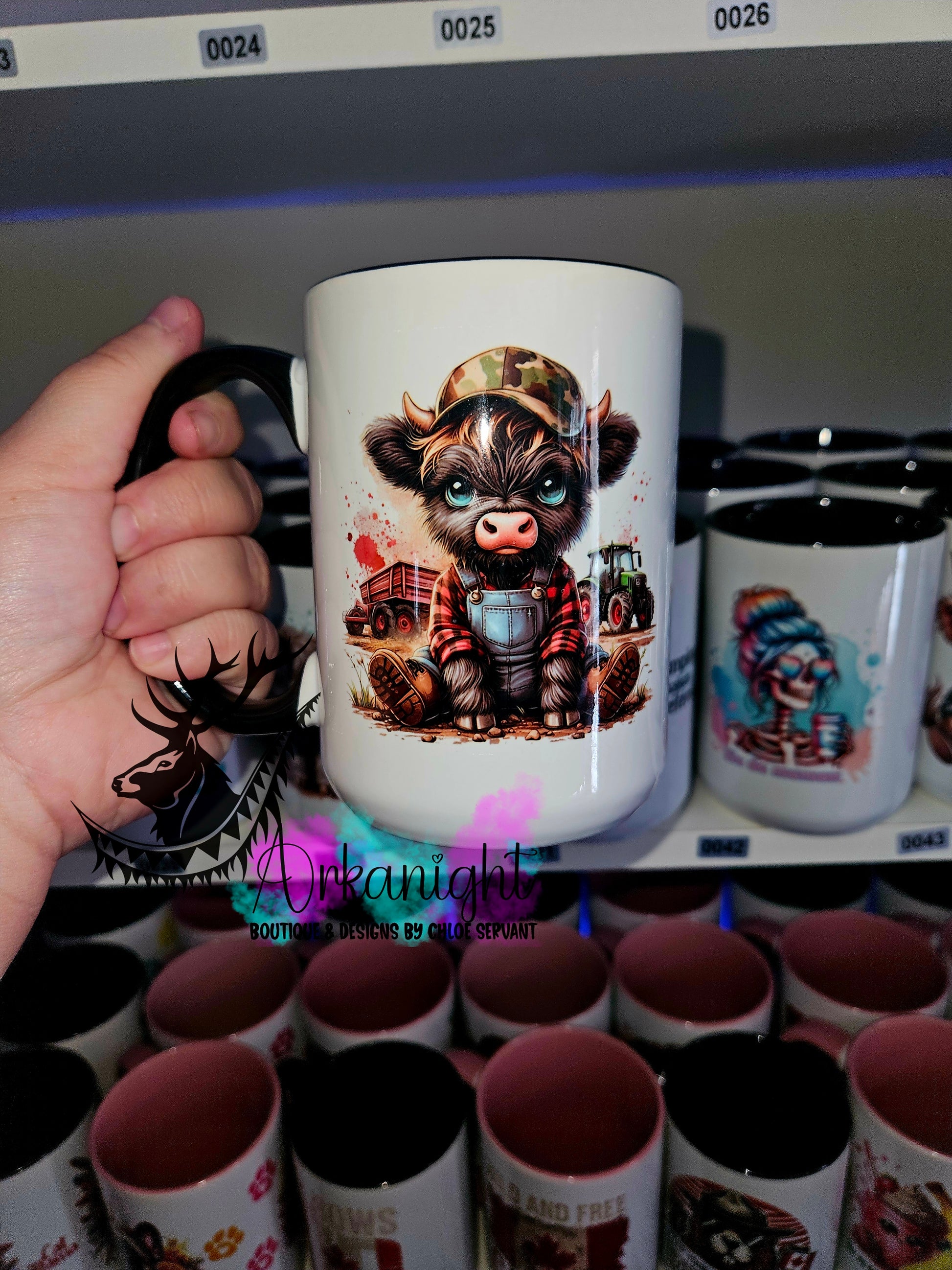Tasse en céramique sur commande - Red Plaid Black Highland Cow Farmer