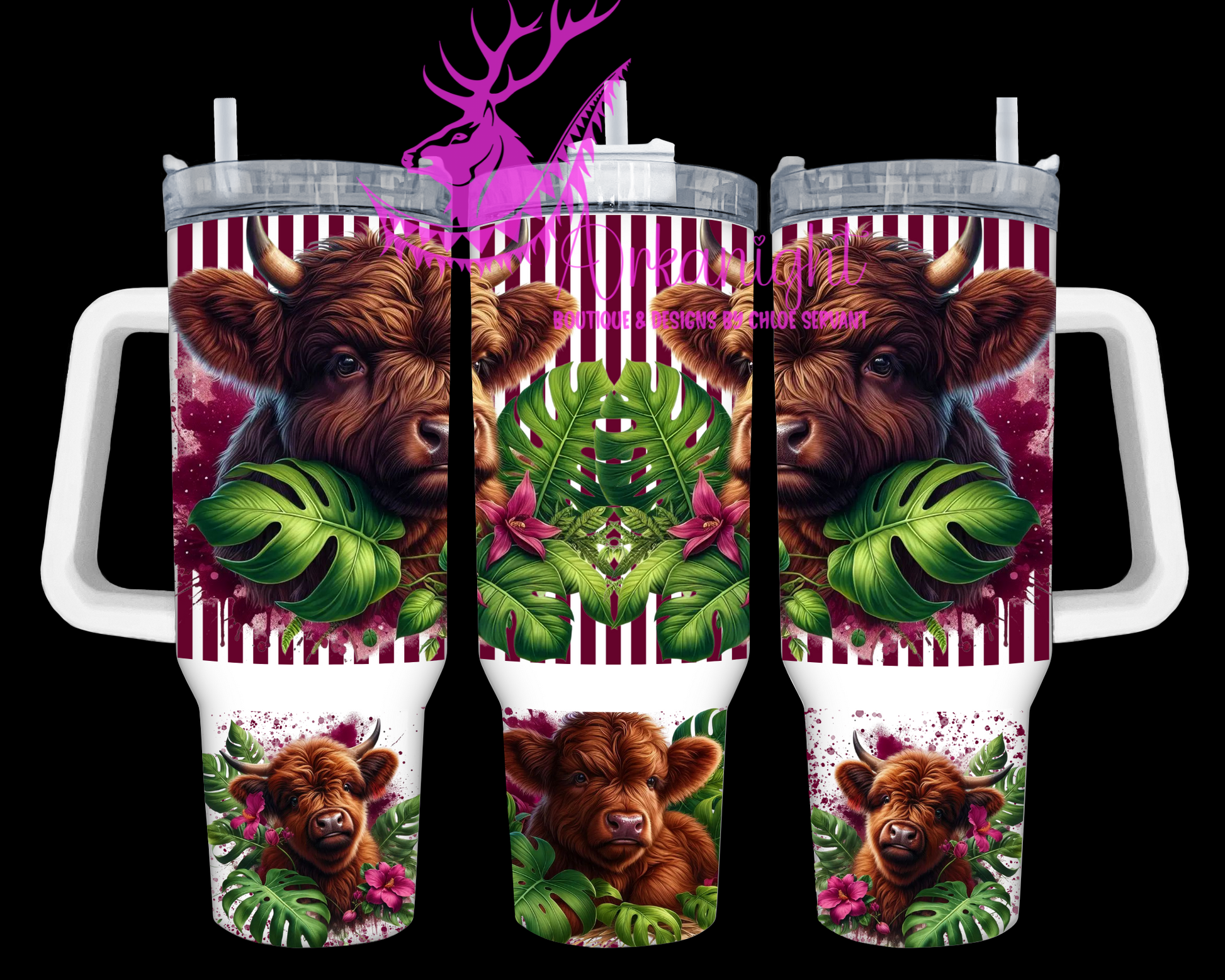 Numérique 40 oz - Collection Monstera & Animals- Dark Brown Highland Cow