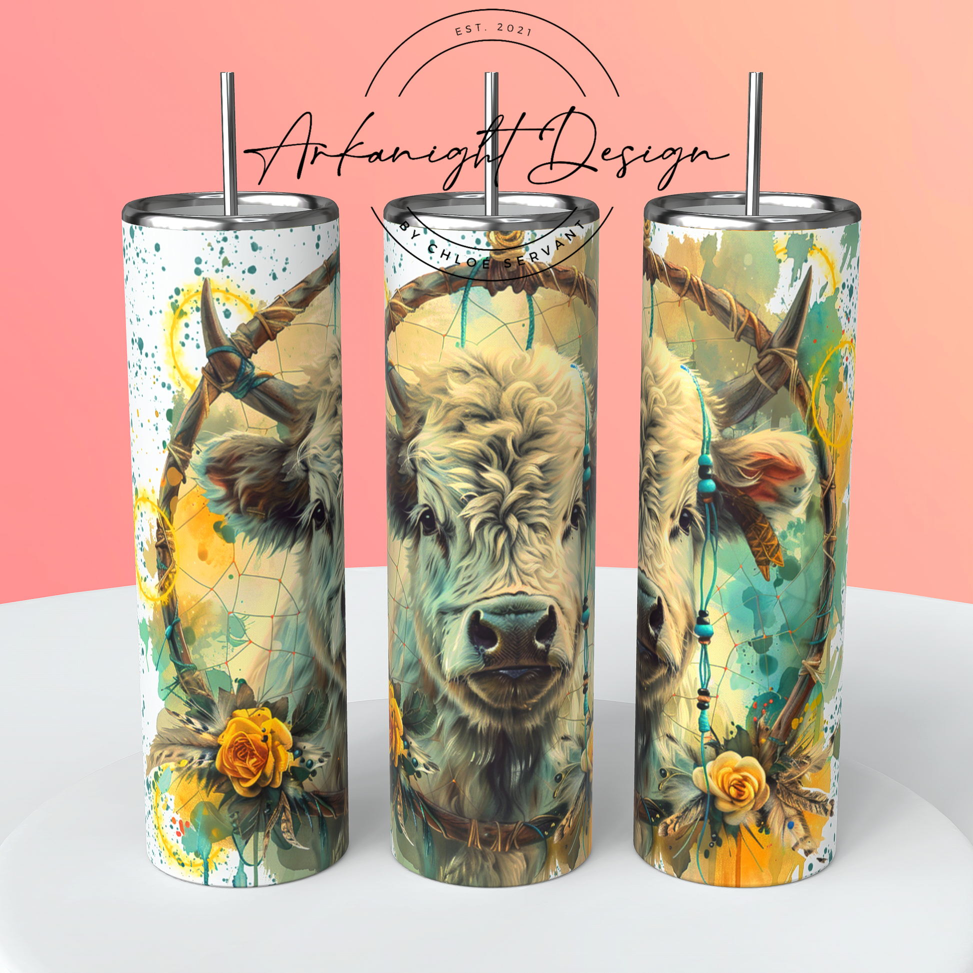 Gourde sur commande - Watercolor Boho White Highland Cow