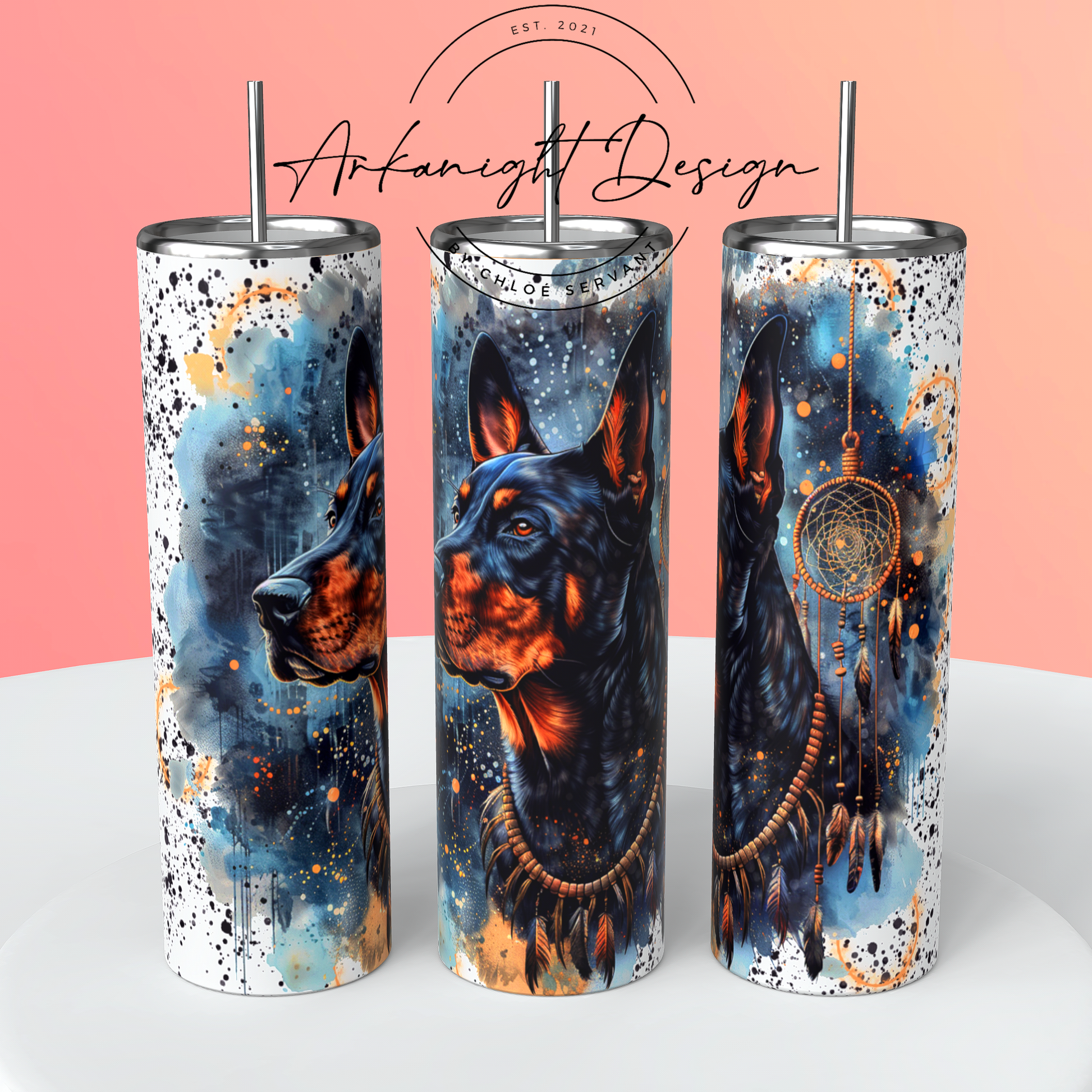 Gourde sur commande - Watercolor Boho Doberman