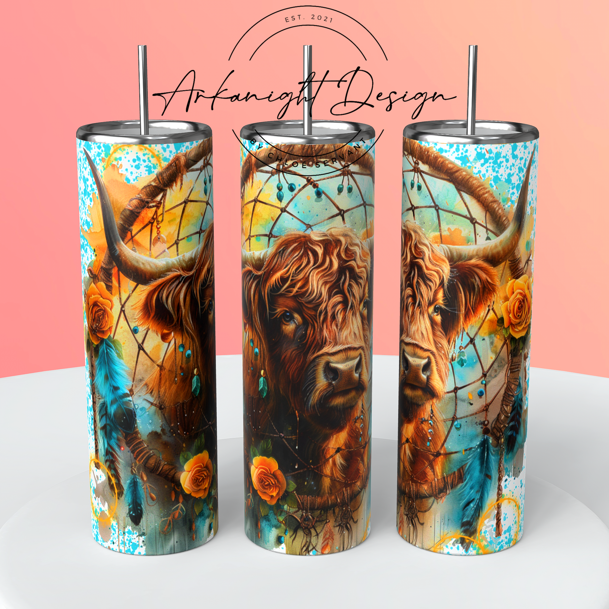Gourde sur commande - Watercolor Boho Highland Cow