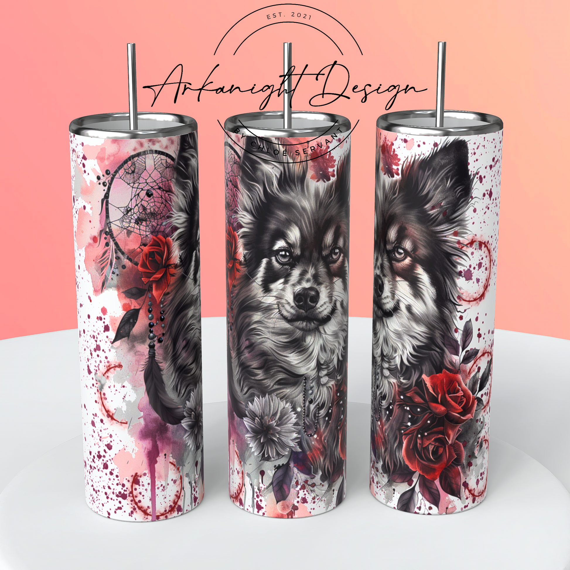 Gourde sur commande - Watercolor Boho Pomeranian Spitz